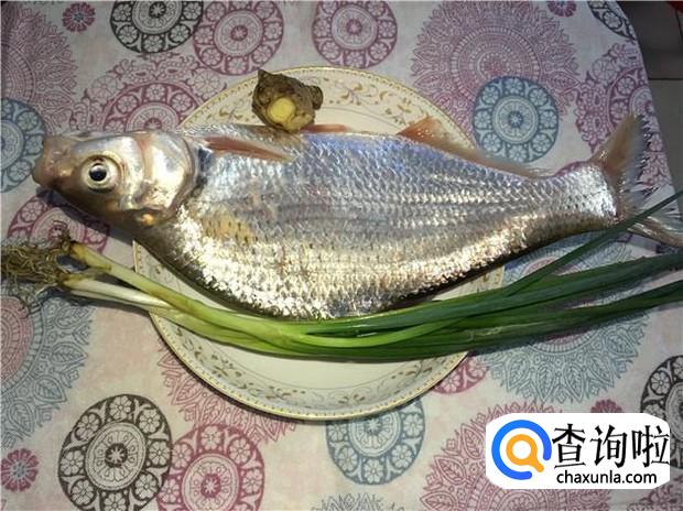 准备好食材,新鲜的鱼一条、姜一块、葱两根。