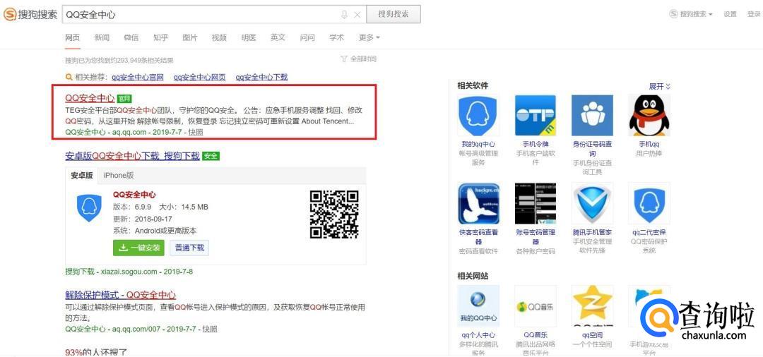 打开搜狗浏览器,在搜索栏中输入“QQ安全中心”。