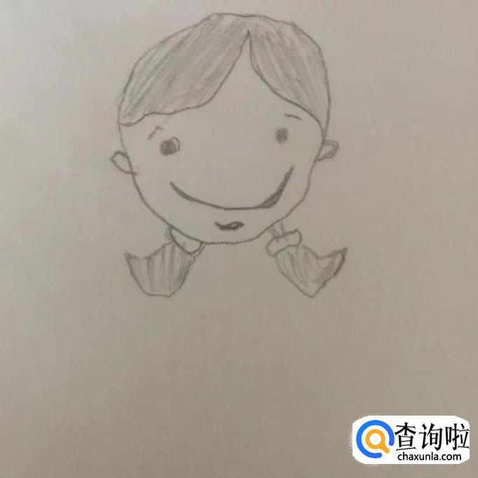 接着画出小女孩的眼睛,眉毛,嘴巴和耳朵如下图所示。