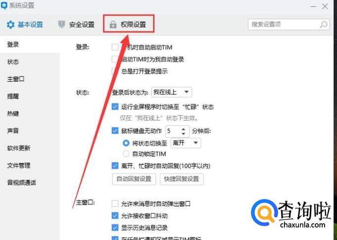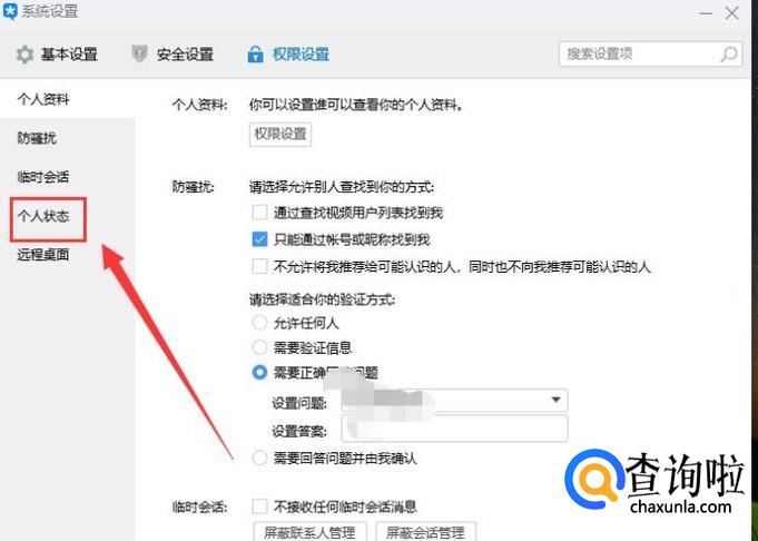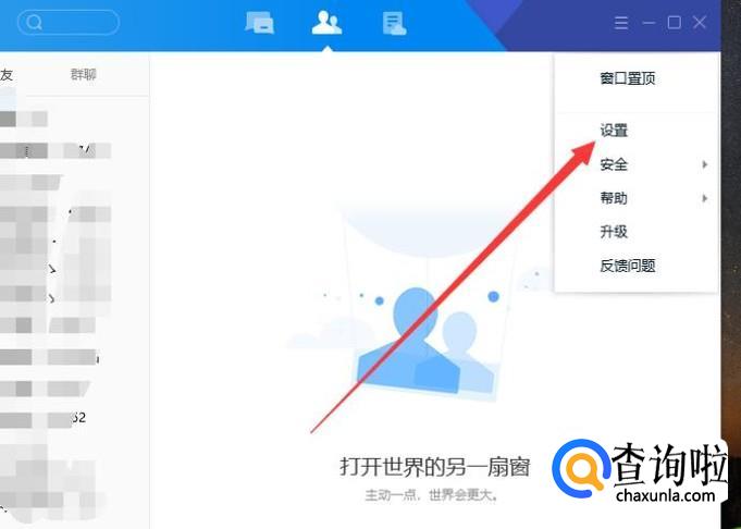 在电脑QQ页面找到“设置”,点击并进入,如图所示。