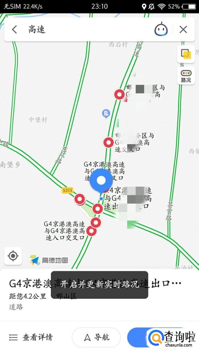 在上高速的时候,进入手机上的地图软件也可以查看高速路况,以“高德地图”为例。