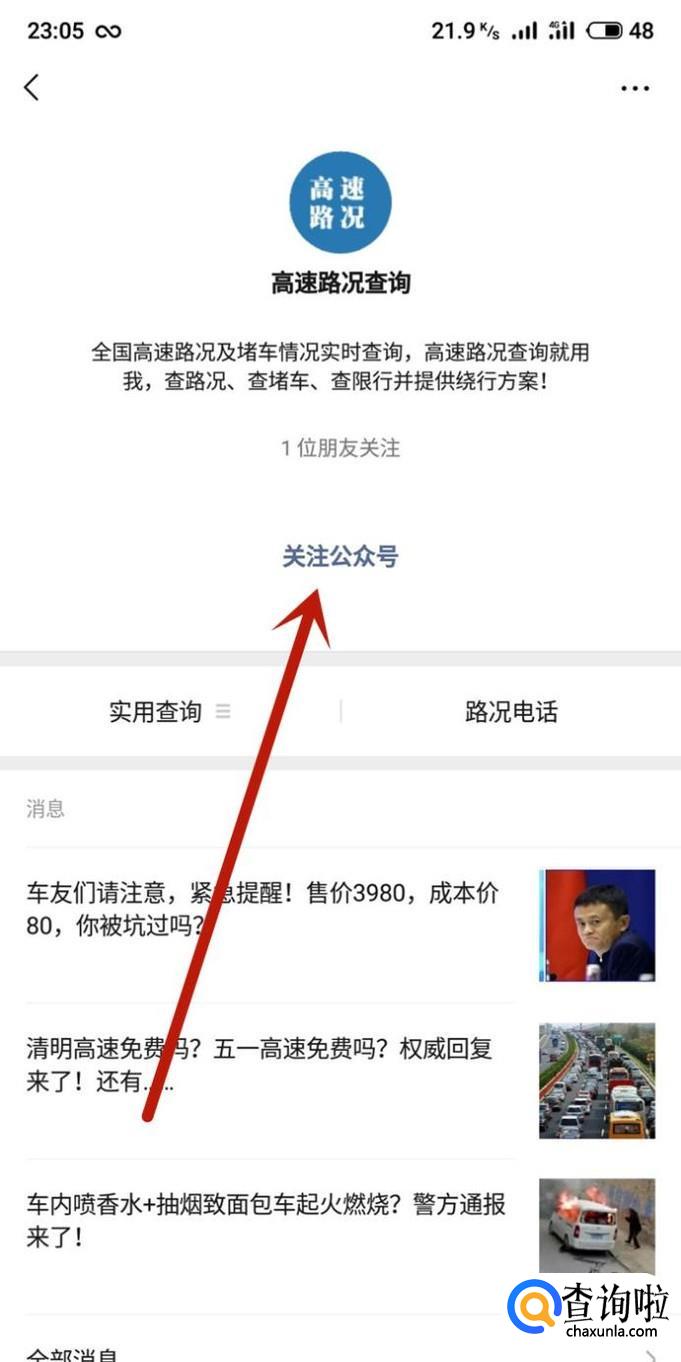 在微信中关注一些更新高速路况的公众号,也可以及时了解高速路况,查询起来很方便。