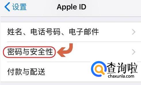 然后就跳转到了Apple ID页面,我们点击该页面中的“密码与安全性”,如图所示;