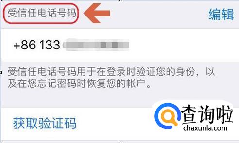这样即可看到目前该手机的受信任号码了,我们可以通过点击右上角的“编辑”来增加受信任的号码;