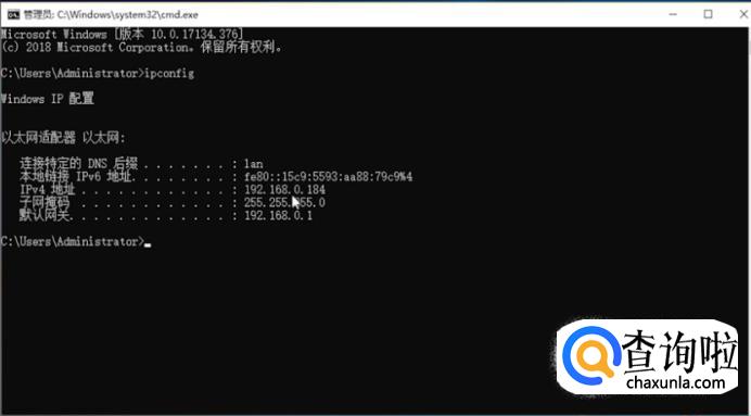 查看“IP”地址可在程序中输入“ipconfig”就可以查看。