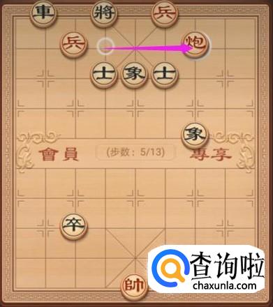 红方这里接着来走它的第三手,红方炮右走3步,如图所示。