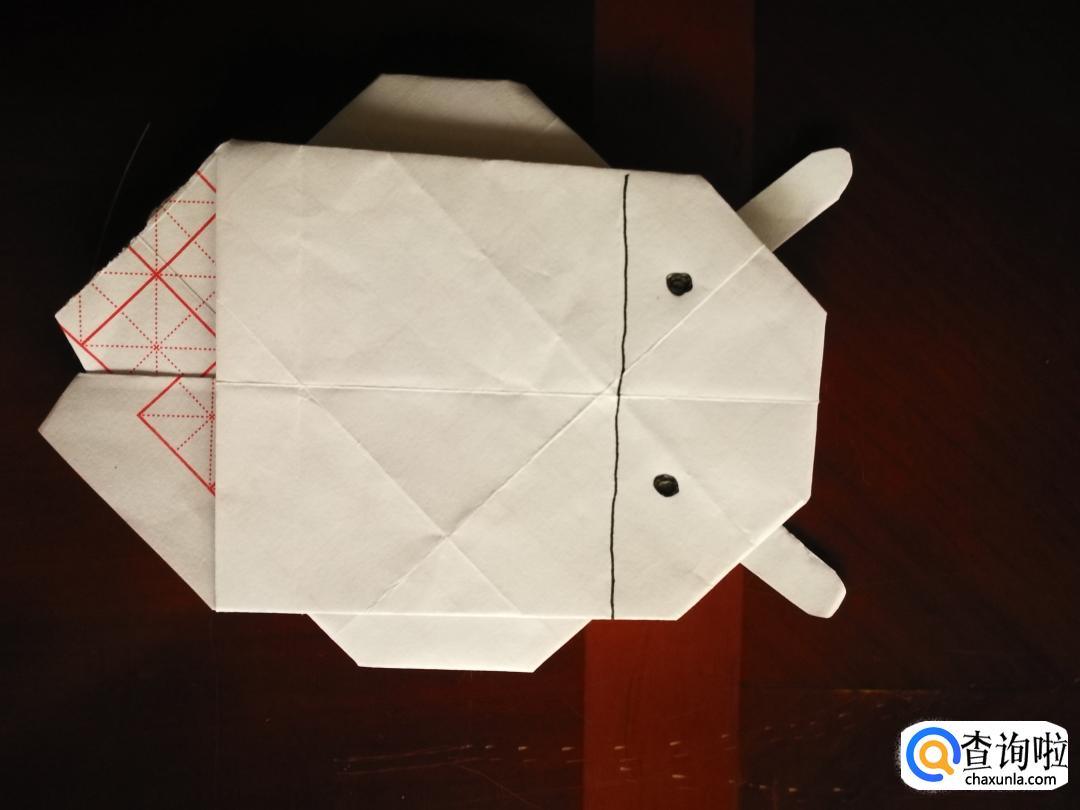 然后再把正方形的两条边往里折一小段,长度如图所示。