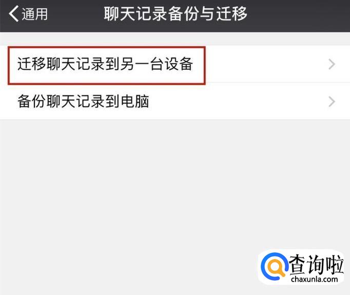 然后点击迁移聊天记录到另一台设备,如下图所示。
