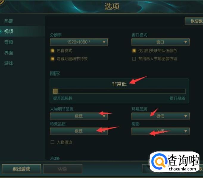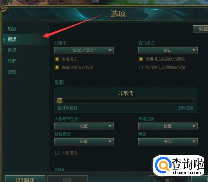 进入之后大家会看到一些图形人物,以及其他的特效,那么这个时候大家只需要做的就是全部调节为低等的,然后点击确定