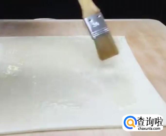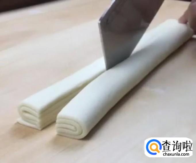 将面团擀成面皮,然后切成正方形或者长方形,如下图所示