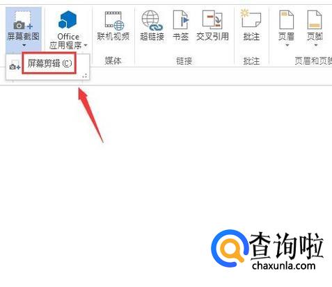 点击插入选项在其内找到屏幕截图选项,如图所示: