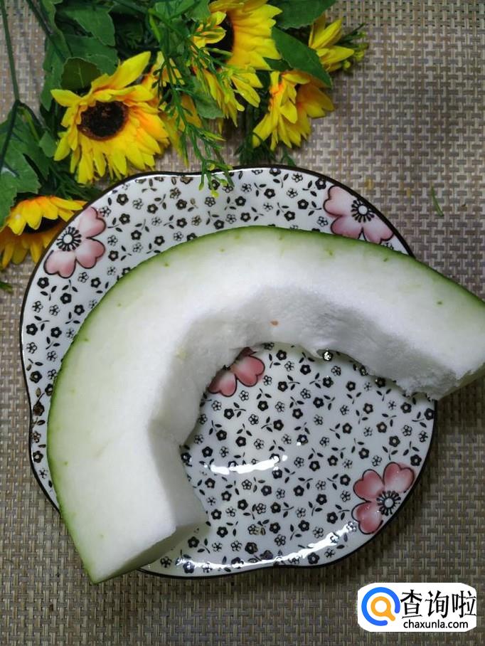 准备一块冬瓜,洗净去皮后,切片,放入盘中备用。
