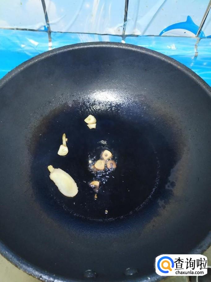 准备适量大蒜,洗净后切片,炒锅中放入适量油,油热后将蒜片放入锅中炒香。