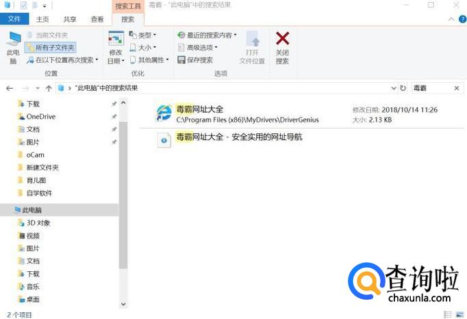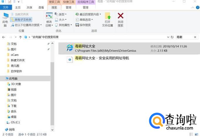 找到毒霸网址大全的所在位置:桌面>此电脑>搜索中输入“毒霸”
