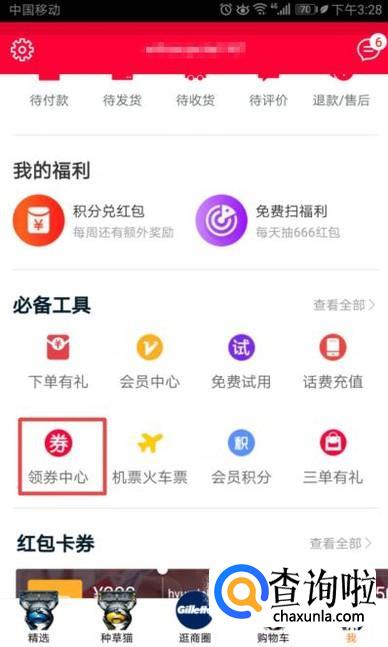 弹出的界面,我们点击领券中心;