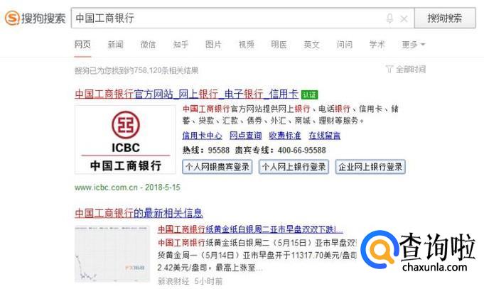 首先我们要使用搜狗浏览器,搜索中国工商银行,找到中国工商银行官网,点进进入。