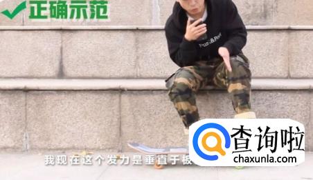 前腿收:身体起跳后,记得用你的前脚去带着滑板,前腿向上拉向胸口收,不一定非要收到胸口上,但要有这样的意识,这样才能越练越高。