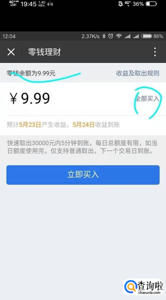进入界面之后,进行零钱买入。