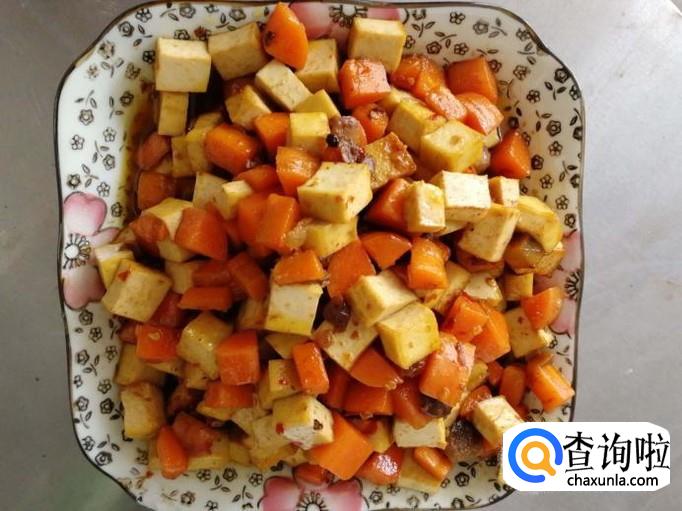 胡萝卜煮熟后,与豆腐干一起炒。炒出来的菜肴既保留了豆腐干的香韧,又因有了胡萝卜汁的滋润,豆腐干吃起来不干,而显得更润泽。下面小编就将这道菜的做法分享给大家。