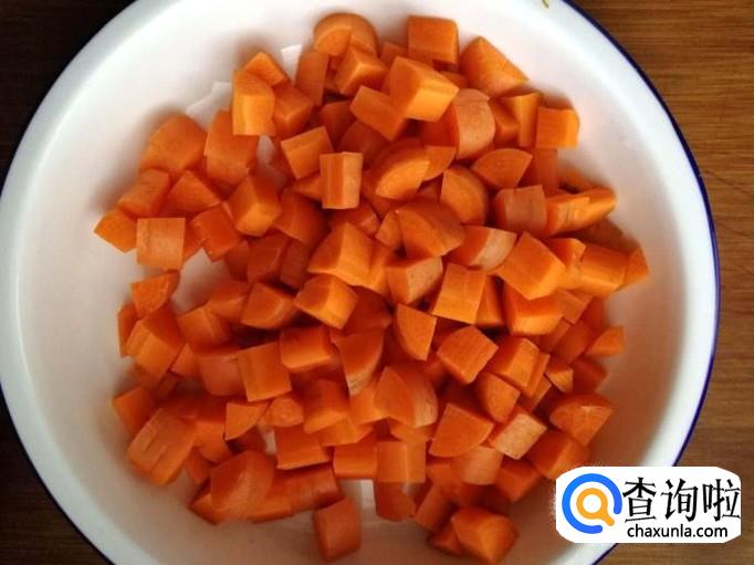 胡萝卜表皮洗净,切成小丁。