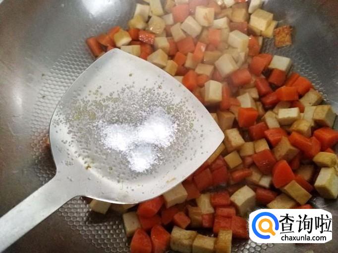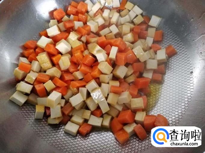 下胡萝卜粒一起翻炒。