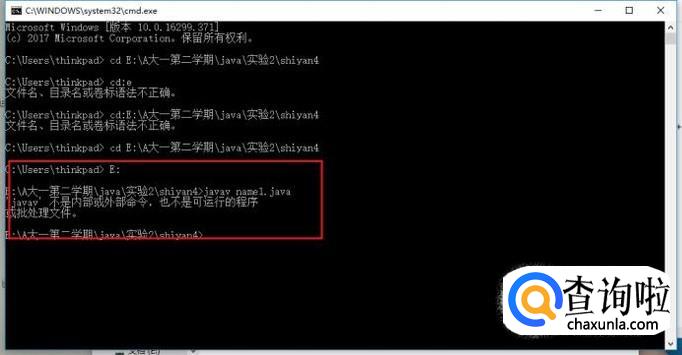 或者查看是不是自己输入错误,正确格式为javac+文件名+.java,注意空格和“.”不能改变,另外文件名也要和上一步自己输入的文件名一致