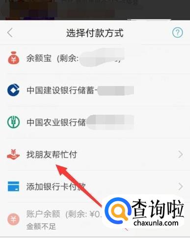 进入之后,选择“找朋友帮忙付”,进入下一页面,如图所示。