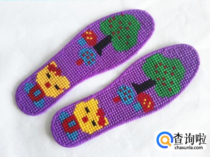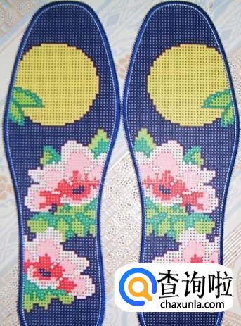 第三种是挑花绣,就是事先在鞋垫上划出网格,然后勾勒出图像,再按照网格一步一步的下针,不能错位,多用十字针法来绣这种图案。