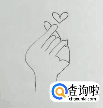 在大拇指和食指中心的上方画出一个心形,我们的比心就画好了。