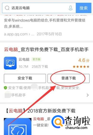 打开搜狗搜索,搜索“达龙云电脑”,将其下载到手机上面。