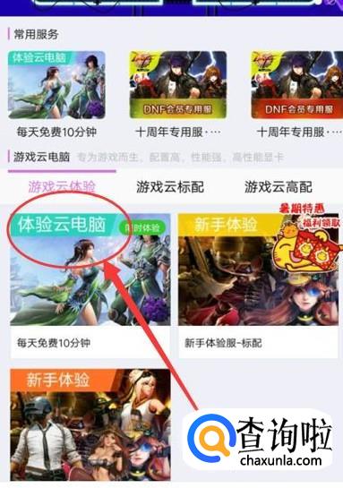 进入之后,点击“云电脑体验”,进入下一界面。