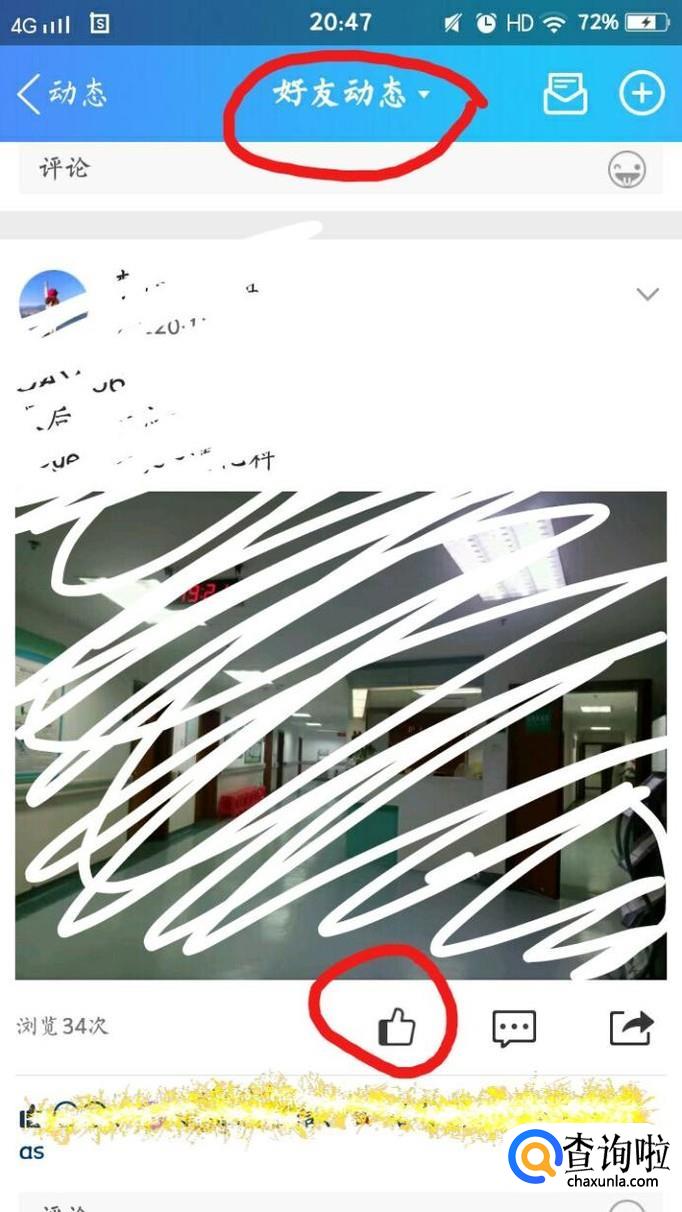 然后在好友动态界面,浏览定位到你感兴趣的好友动态,找到点赞的图标。