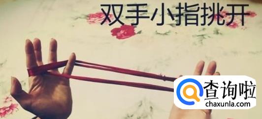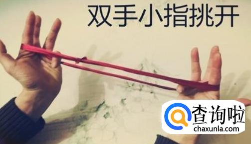 用右手大拇指挑开左手拇指与小指中的那一根,然后左手大拇指再挑开右手拇指与小指中的那一根。