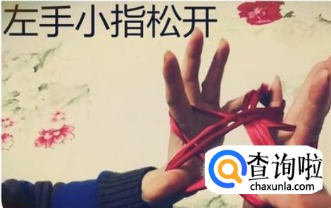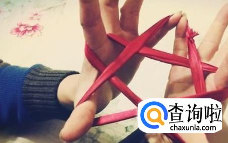 松开右手小指,也插入调整好指头的位置,一个翻绳五角星就出来了。