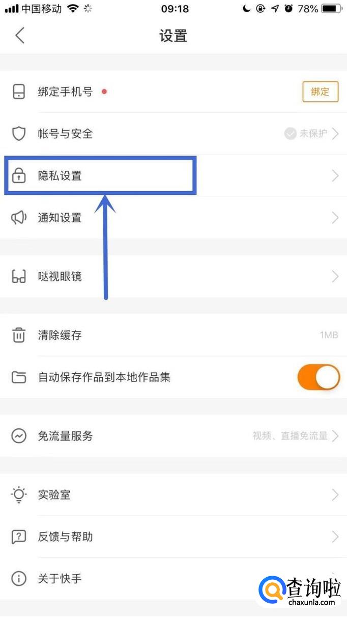 然后点击隐私设置,如下图所示。