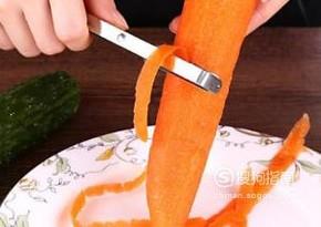 准备一根大一点的胡萝卜,去掉萝卜叶,洗净后削皮备用。