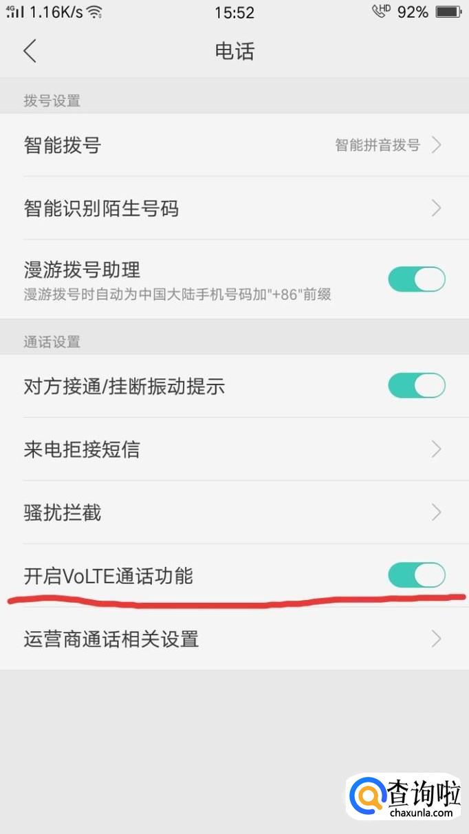 点开后可以看到关于volte选项。