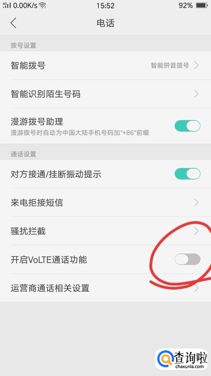 点击“开启volte通话功能”选项进行关闭,关闭后如下图所示。