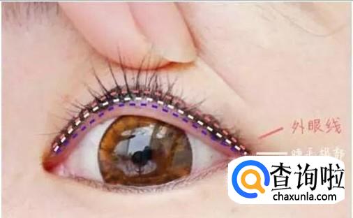 用眼线液在眼尾适当拉伸一下,可以起到放大双眼的效果。(注意不要拉长太多,会显得很夸张。)