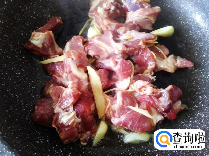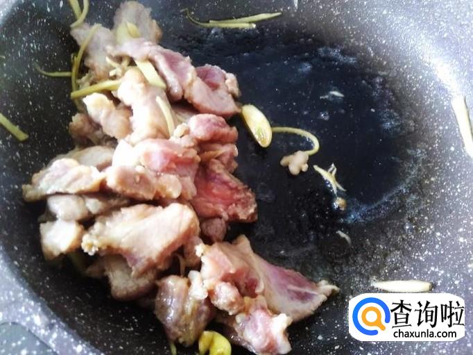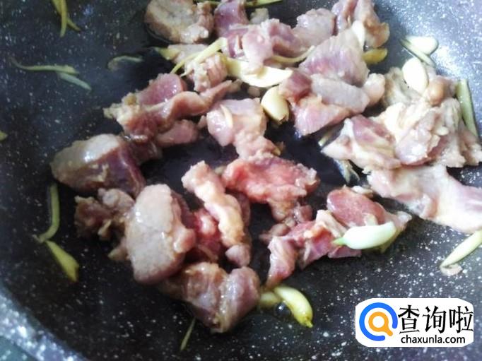 翻炒入味,然后混合瘦肉翻炒一下,加几滴老抽进去。【老抽主要上色】