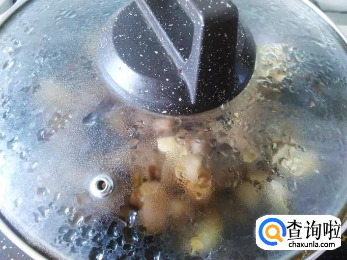 翻炒20秒左右,盖上盖子小火焖4分钟左右。【不用加水,因为蘑菇水份很多】