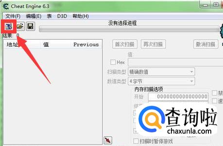 进游戏后,点开【Cheat Engine修改器】,并找到该页面左上方的小图标,如下图。