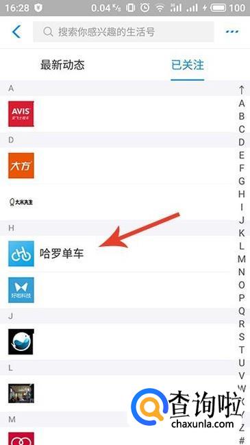 在生活号中搜索“哈罗单车”进行关注,关注之后点击进入。