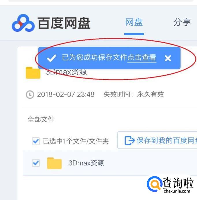 这样就可以保存到自己的百度云盘,如图所示点击进入百度云盘查看;