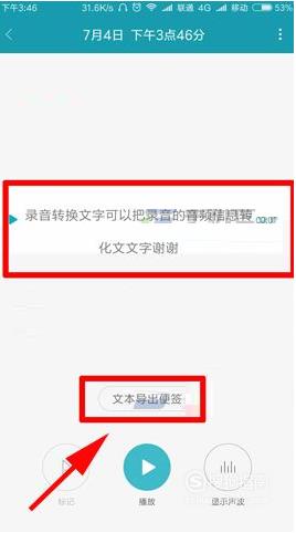 接着我们可以刚刚转成文字的录音内容,最后点击【文本导出便签】即可。