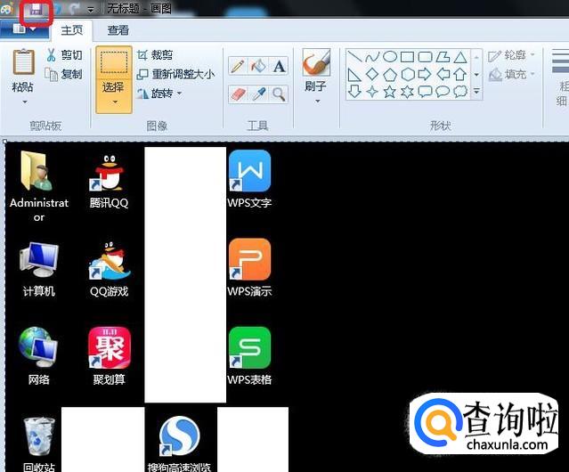 打开画图后,我们按“Ctrl+v”,就能把截屏的画面粘贴到画图中,然后,我们点击画图左上角的保存按钮,就可以把截屏画面保存为图片了。