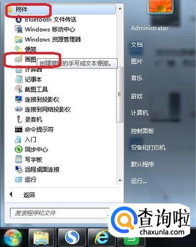 在附件里面,找到“画图”,点击进入。