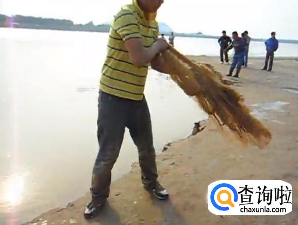 剩下半人高的渔网的时候,就把带有铅坠的渔网抬起来。