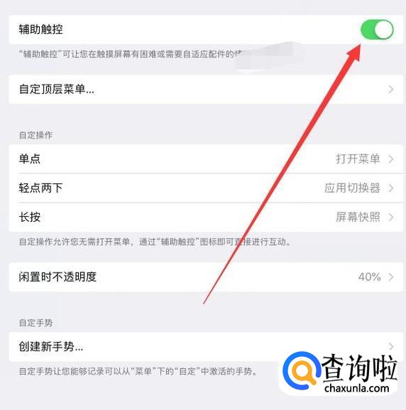 进入之后,点击“辅助触控”,进入下一页面,如图所示。