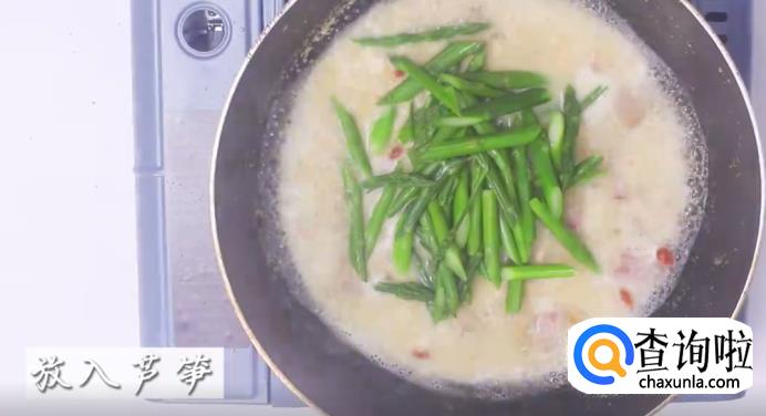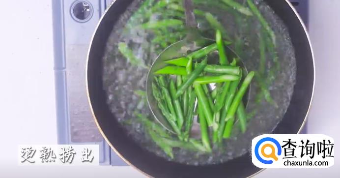 待芦笋煮熟后,将其捞出,放在一旁备用。